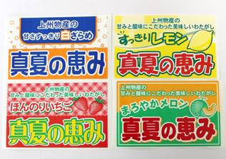 食品問屋として40年間、食品に携って来た私たち上州物産が、食品の知識を活かし、果物の風味にこだわった綿菓子が、お子様から大人まで大変喜ばれております。