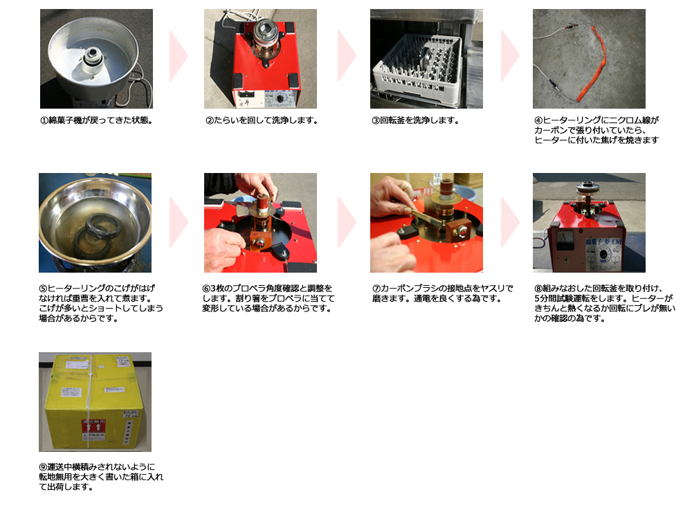 営業時間内の場合は綿菓子機専門店までご連絡ください。