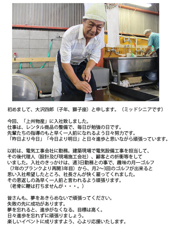 笑顔をつなぐレンタル 上州物産スタッフ一同