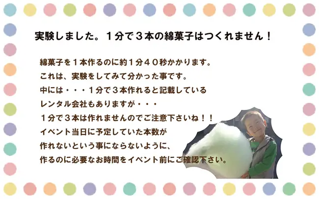 あなたの目的は何ですか?少しでも安く綿菓子機をレンタルする事ですか?それとも本当においしい綿菓子でお客様に喜んでもらう事ですか?